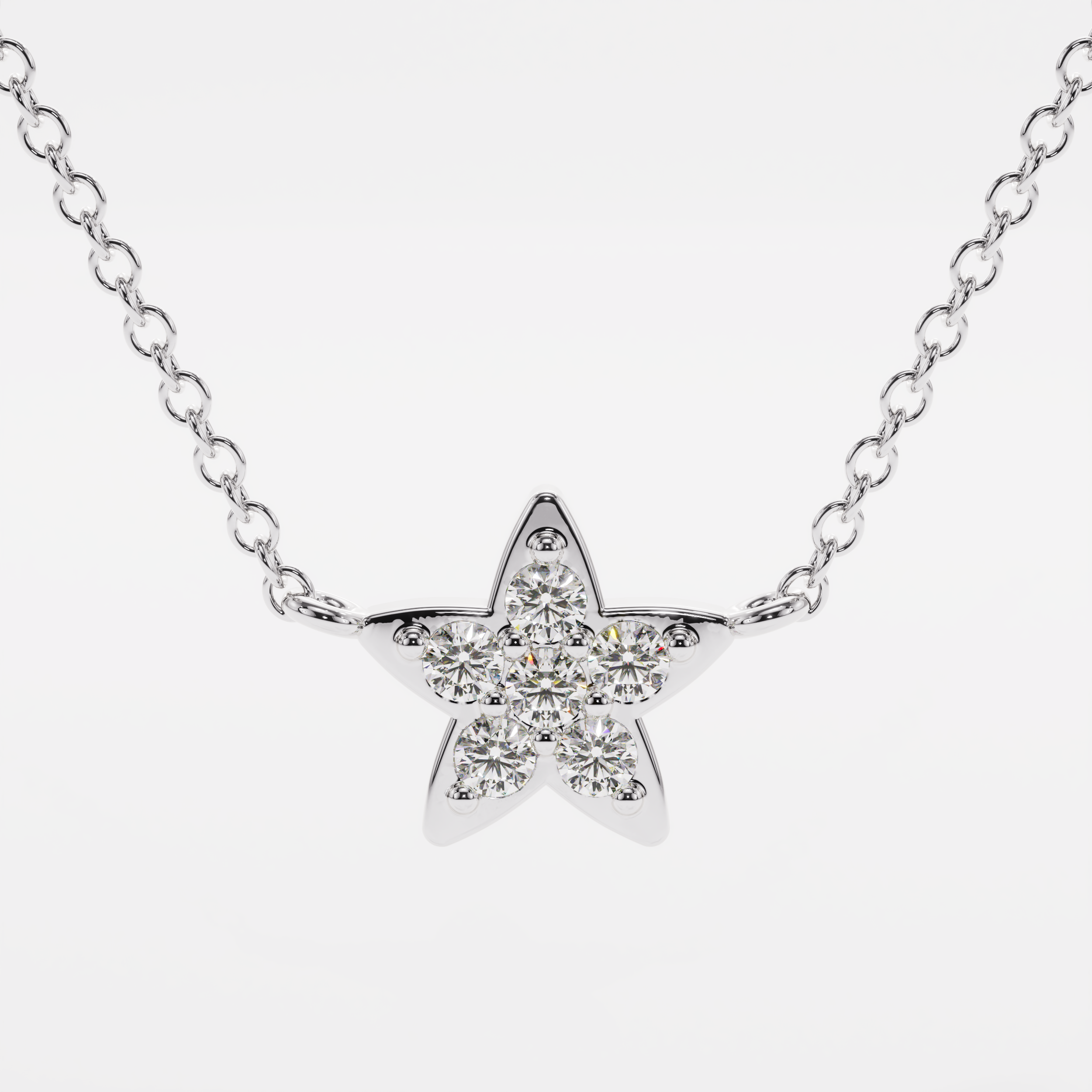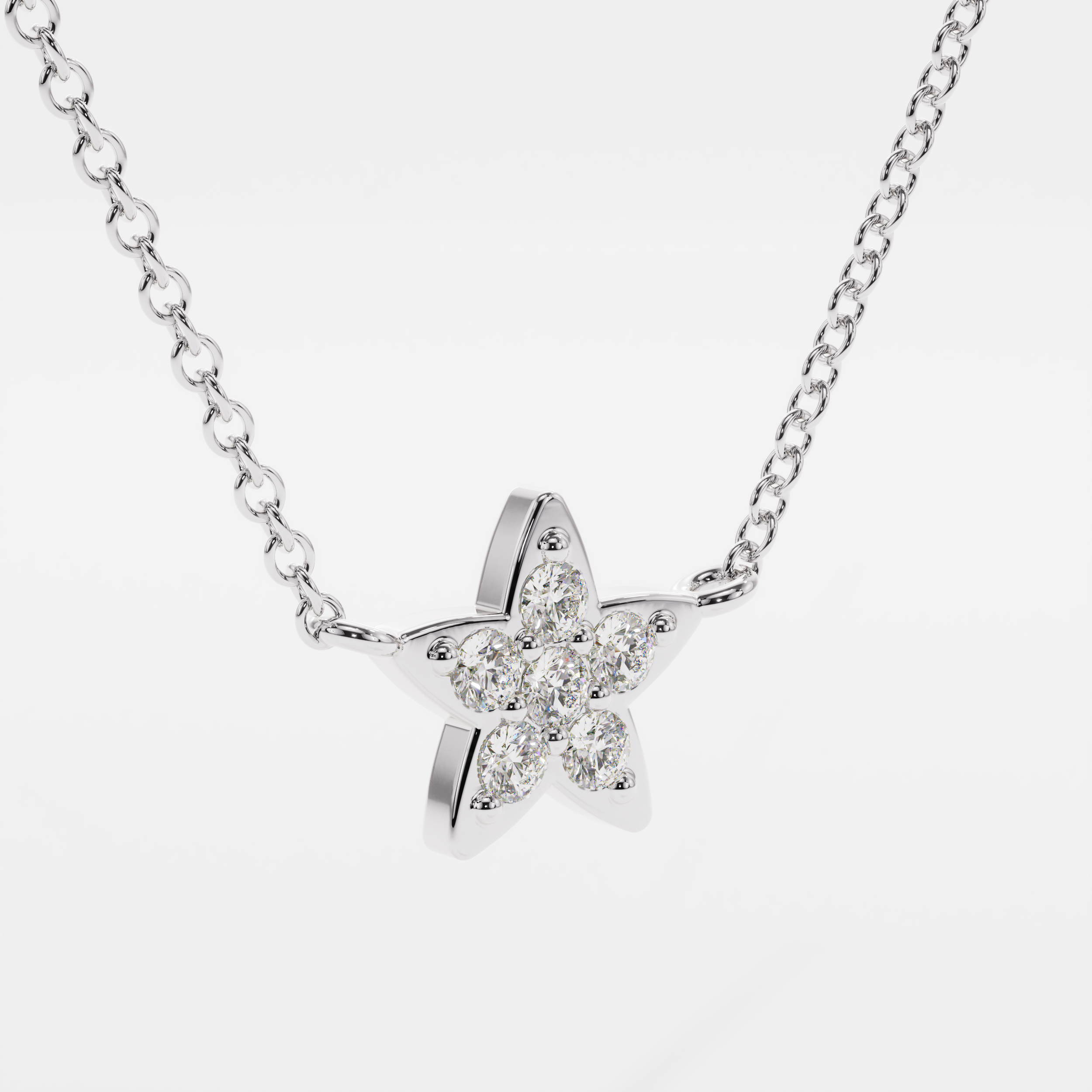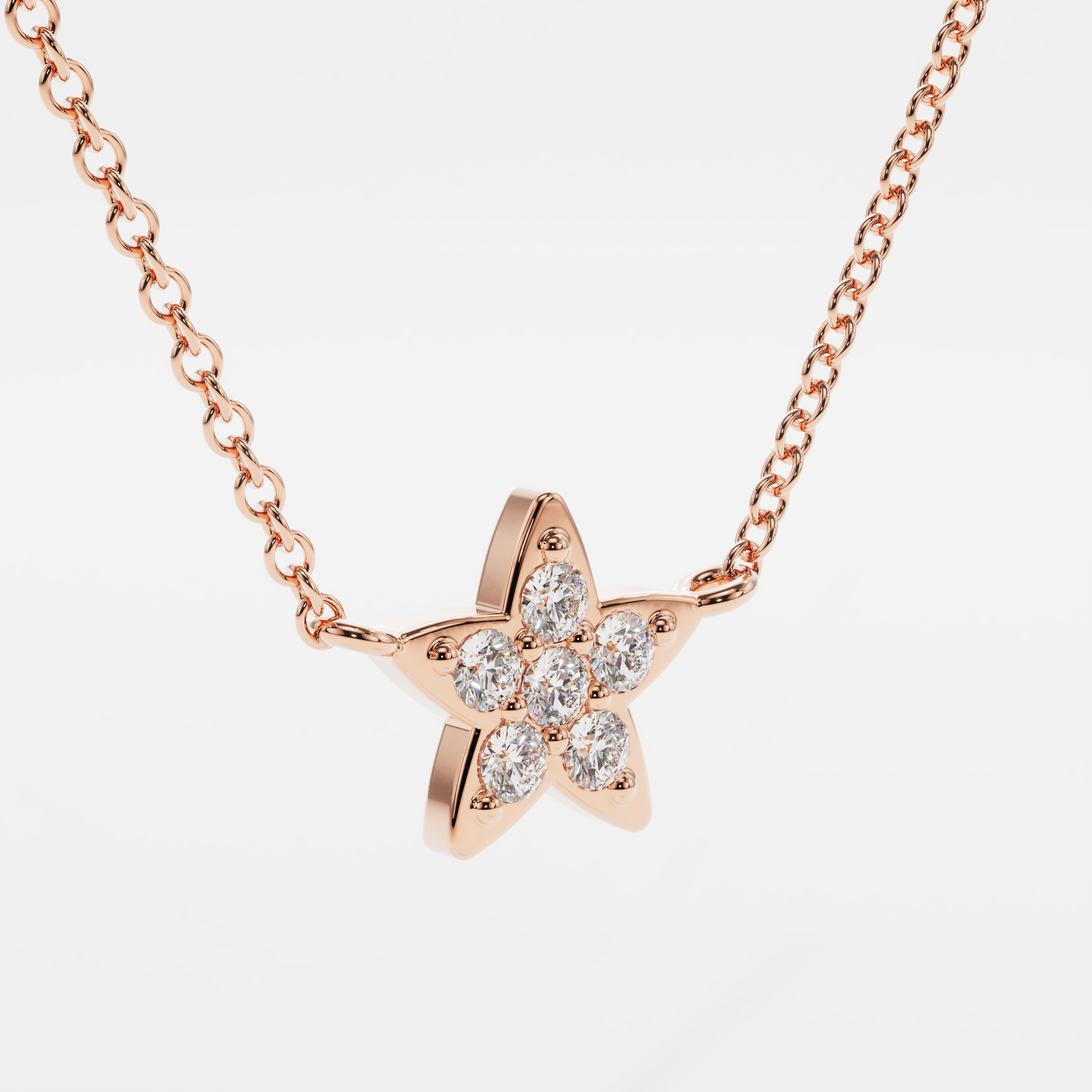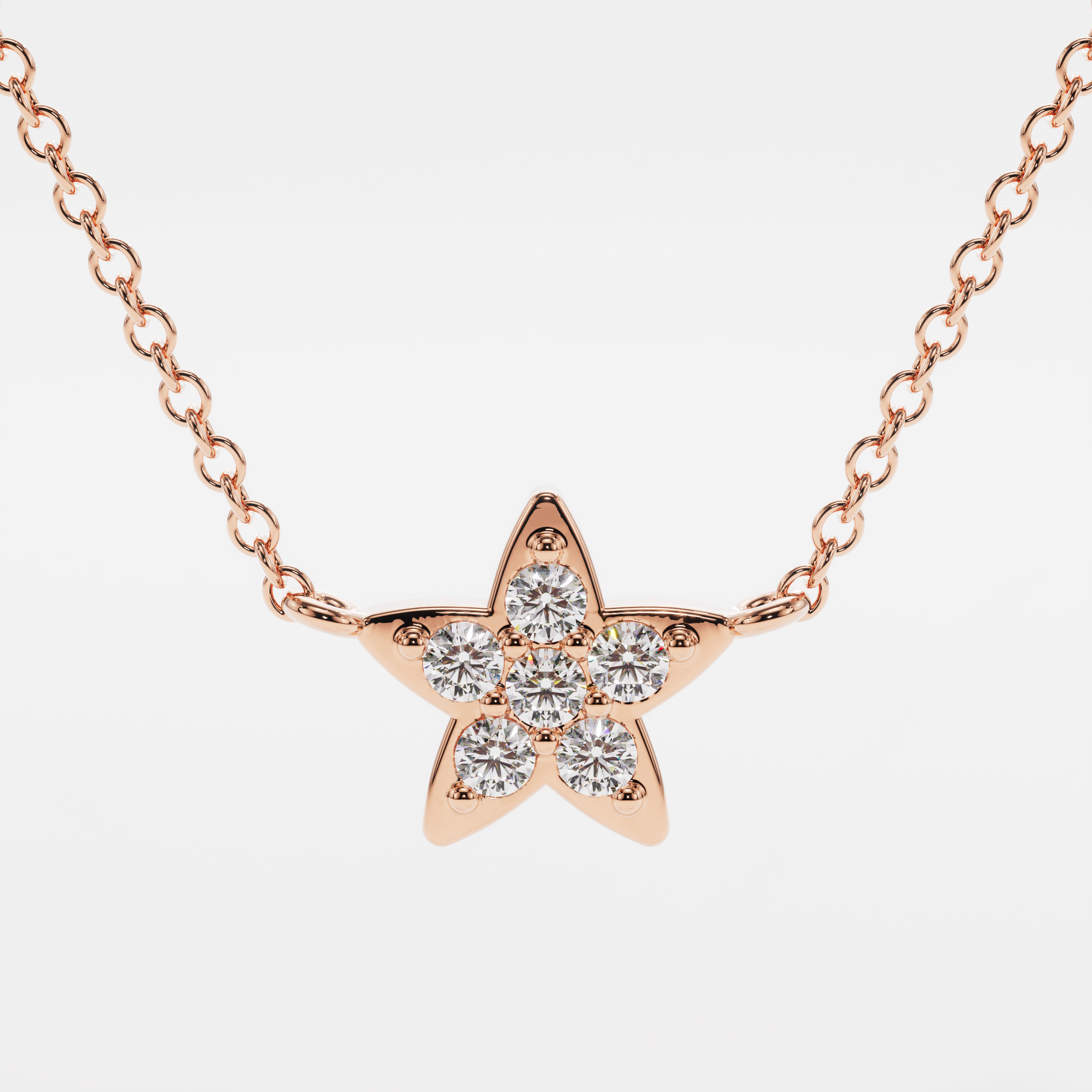 14k gold necklace with a five-pointed star pendant set with natural diamonds. Elegant, glamorous, and timeless jewelry.