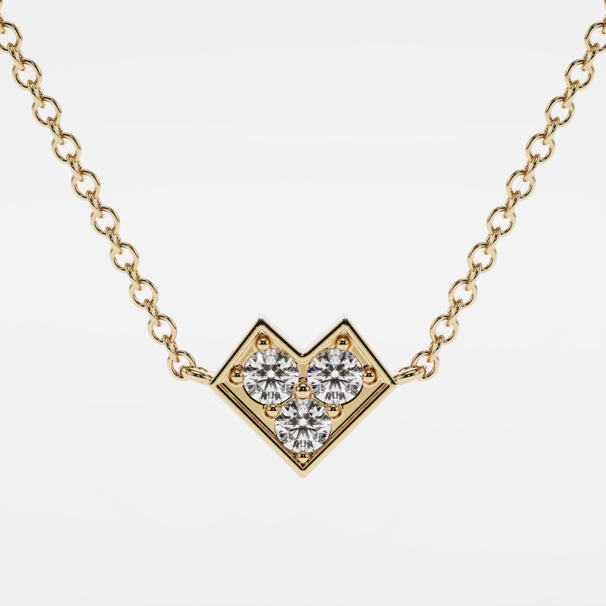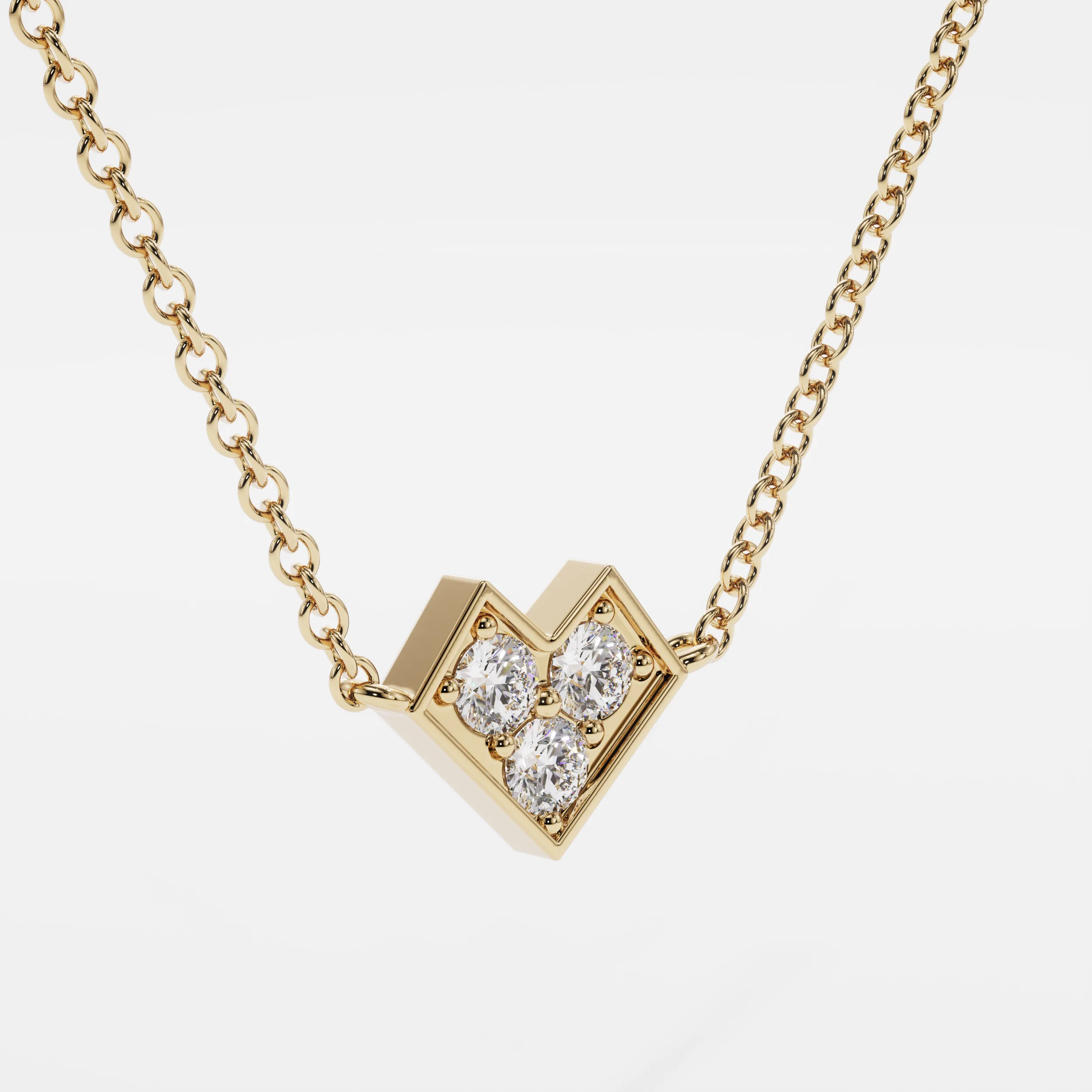שרשרת זהב 14 קראט עם תליון לב מחודד משובץ 3 יהלומים טבעיים. עיצוב מודרני, אלגנטי ומלא תחכום.