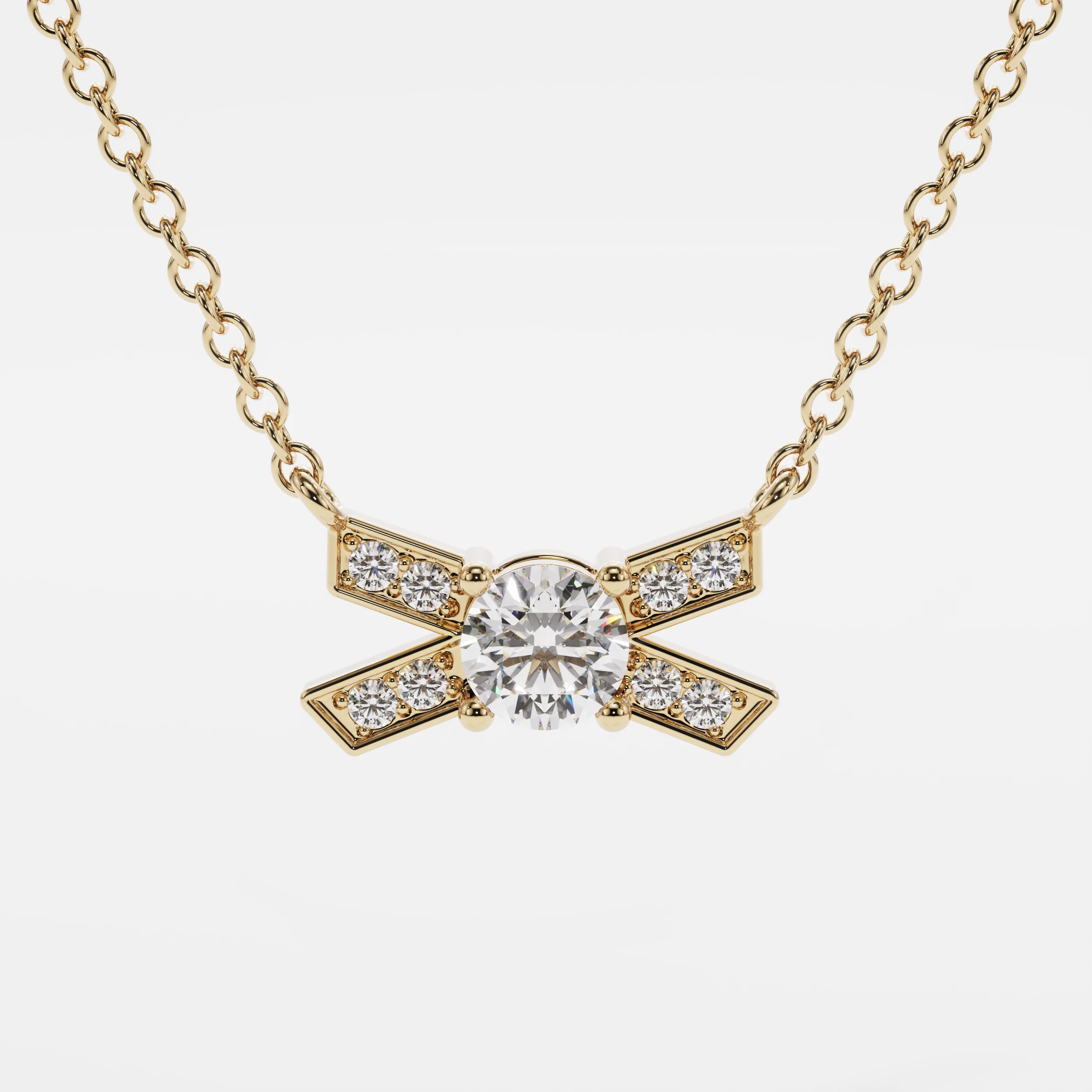 תליון זהב בעיצוב גיאומטרי מודרני עם יהלום מרכזי וזרועות משובצות יהלומים. שילוב עוצמתי של אלגנטיות, ברק ויוקרה נועזת.
